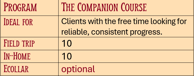 The Companion Course helps you build a calm, cooperative dog at home and in public—perfect for polishing manners and creating daily routines that stick.